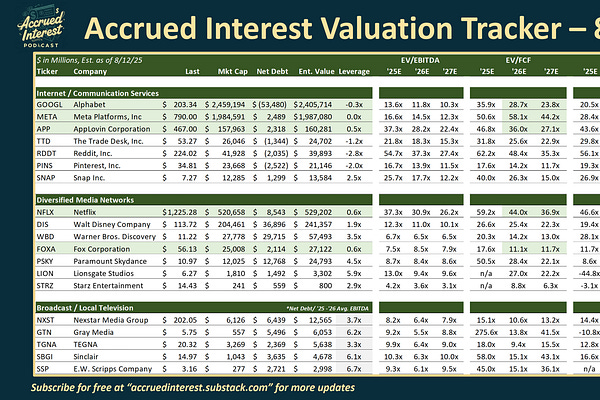 Media Valuation Tracker Update – Week of Aug 12, 2025