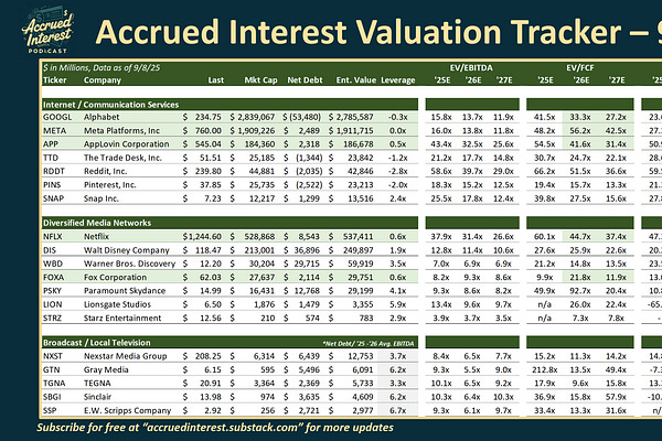 Media Valuation Tracker Update – Week of Sep 8, 2025