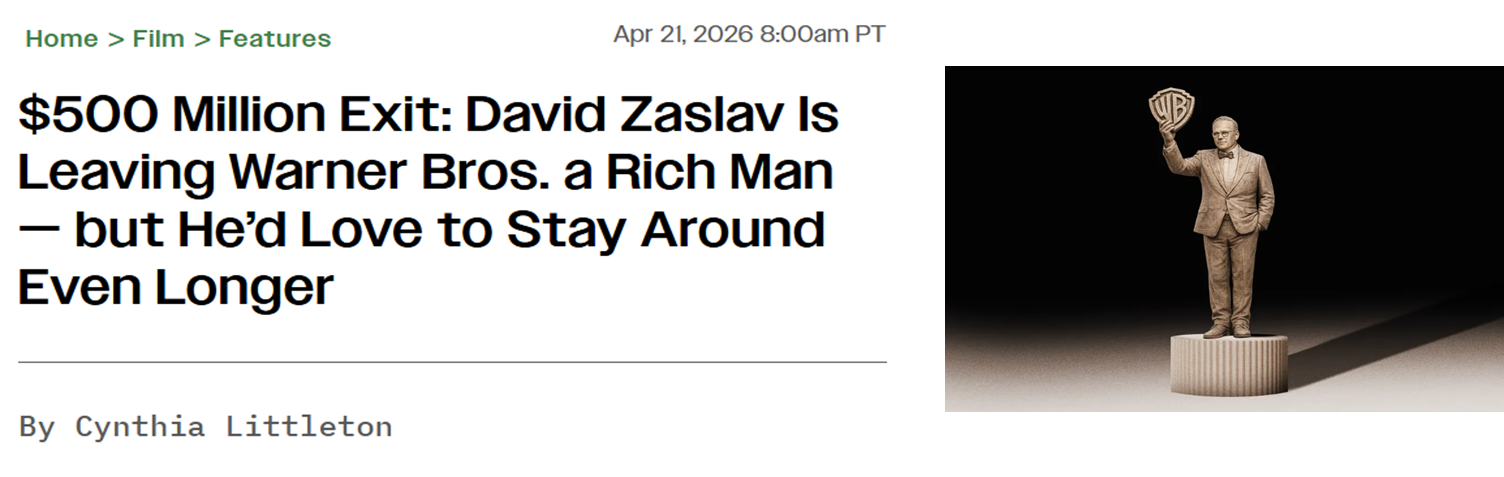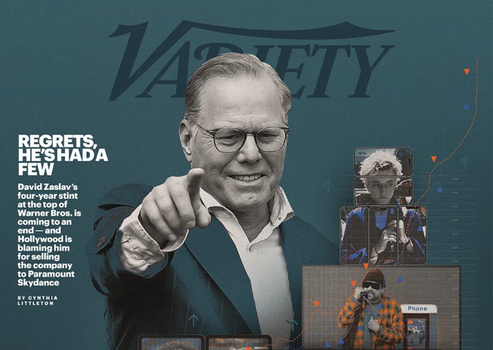 We need to talk about Variety’s latest deep dive: “Inside David Zaslav’s $500 Million Warner Bros Exit After Paramount Sale.“ The piece relies heavily on quotes from corporate insiders to paint a picture of a company that was magically on the mend prior to the Paramount-Skydance (PSKY) acquisition.