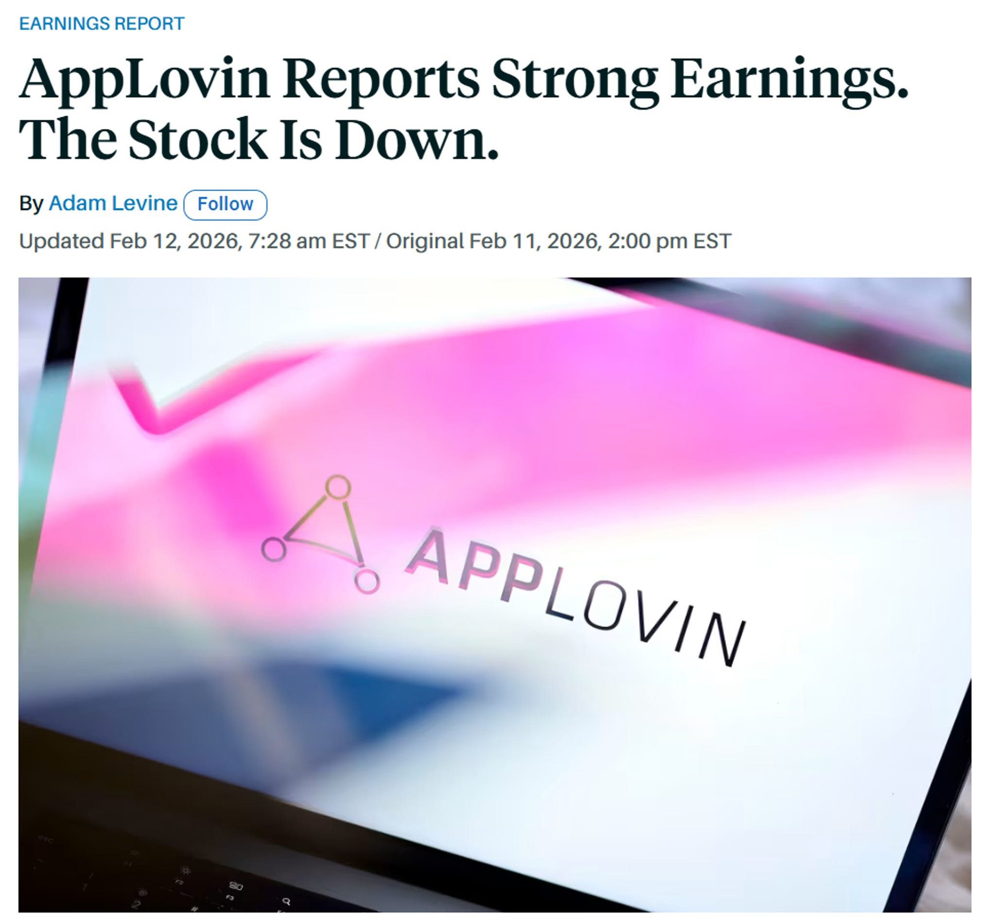 AppLovin reported Q4 earnings on Feb 11, 2026. The headline numbers were a “beat and raise” across the board: