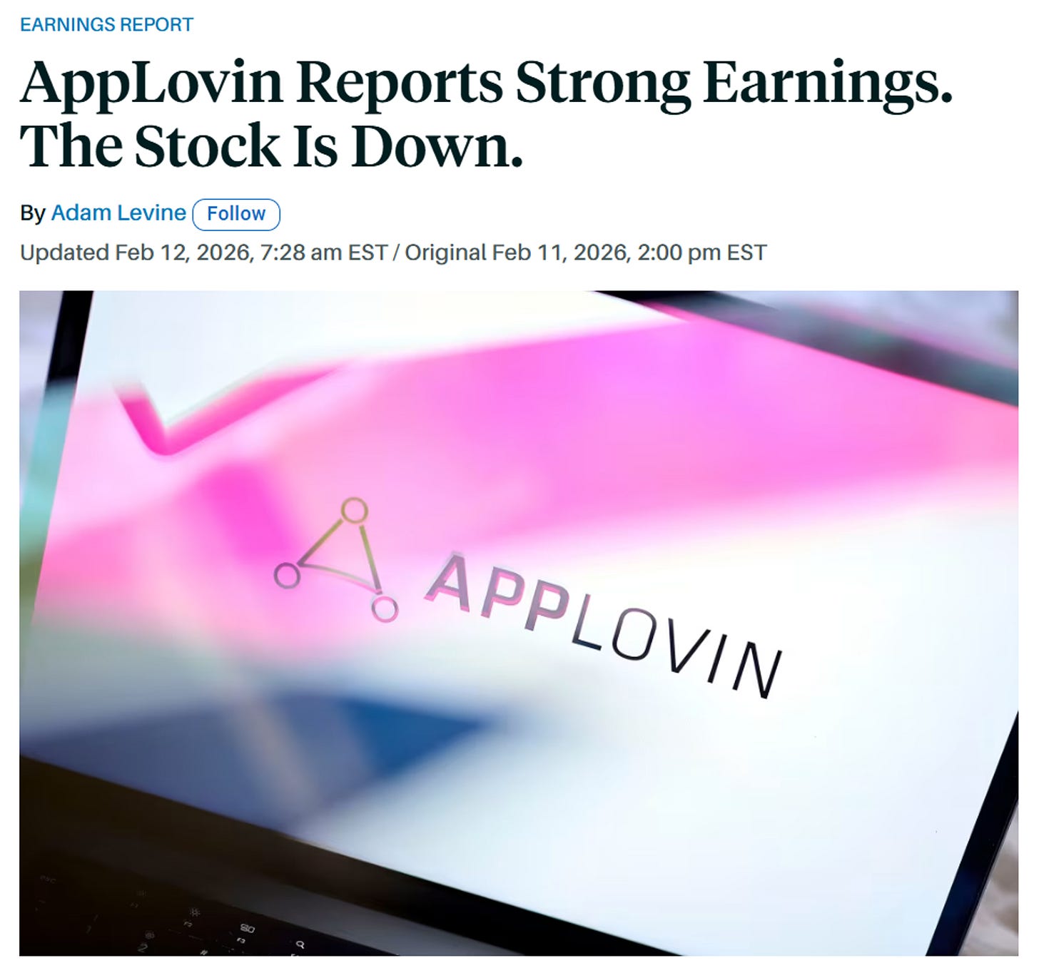 I recommend pairing this article with my pre-earnings write-up from Feb 5th – “AppLovin ($APP) Down -44% YTD: Fear vs. Fundamentals”.