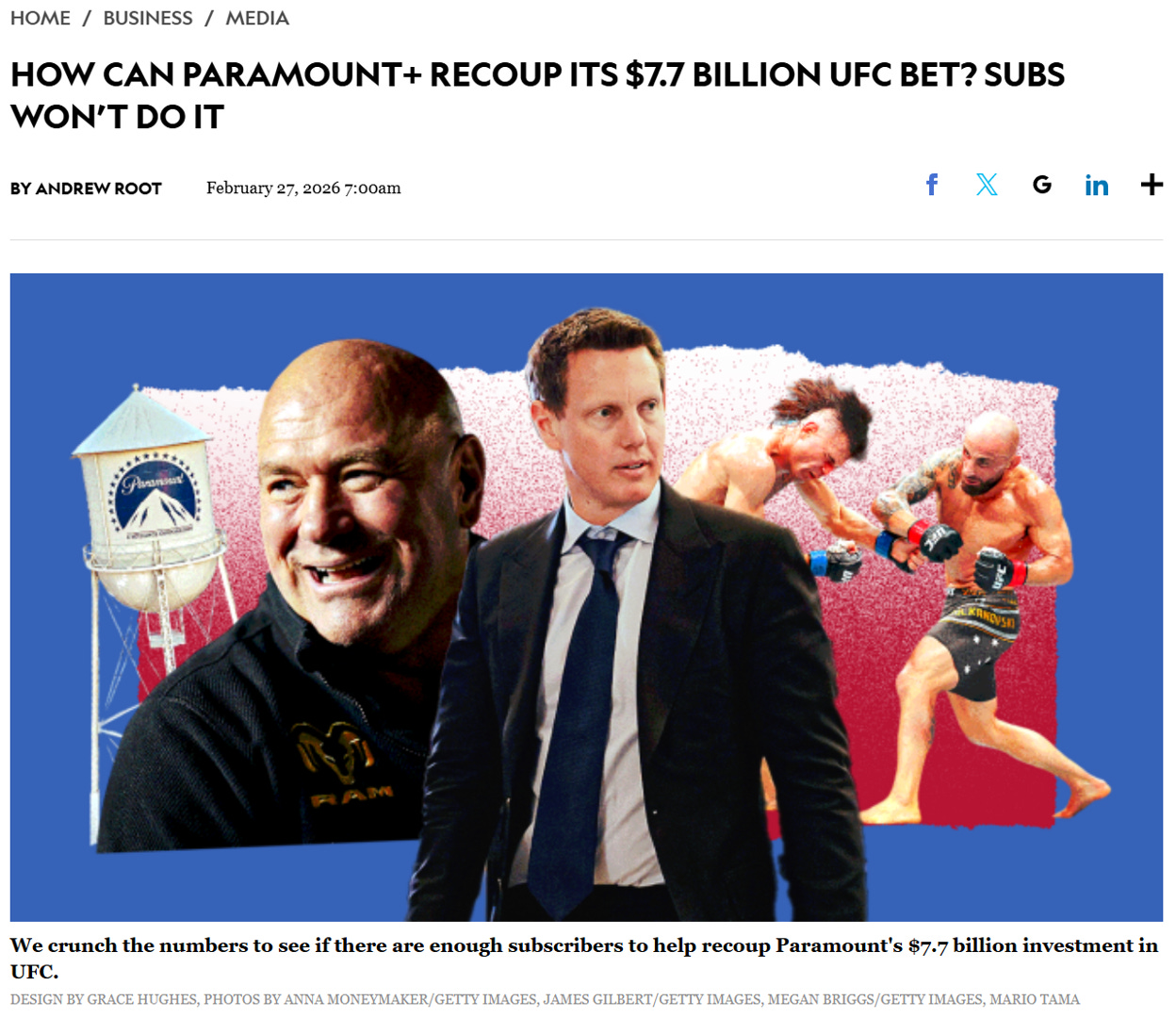 The Debt Ceiling: With a $79 billion debt load, PSKY + WBD simply cannot compete. A glaring example of this desperation is Paramount’s recent 7-year, $7.7 billion agreement for exclusive UFC media rights. At $1.1 billion annually, they are paying double what ESPN previously paid, while simultaneously abandoning the lucrative Pay-Per-View model entirely. They are grossly overpaying for sports rights just to maintain engagement on Paramount+.