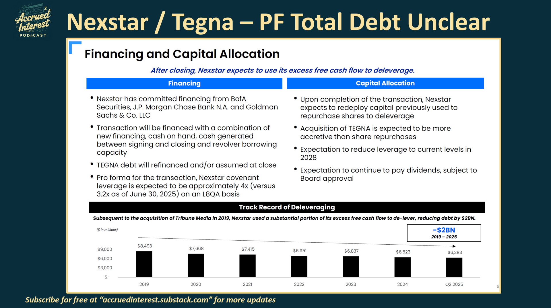 The Nexstar deck undersells just how much leverage is going up at Nexstar in the short-term with an all-cash deal.