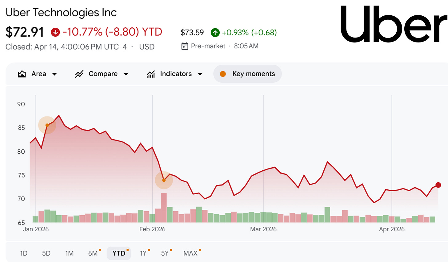 Looking at the tape, Uber stock is currently sitting at $73 per share. I rate Uber as an Outperform, but the stock is currently down -11% year-to-date. I do not think Uber stock is going to truly take off until management can show strong, undeniable revenue growth to investors, so I expect the stock’s performance to be somewhat muted until earnings. Uber is trading at 21x 2026 GAAP EPS, but a much more reasonable 16.7x 2027 earnings. This is a value stock, and I am stubbornly sticking with it.
