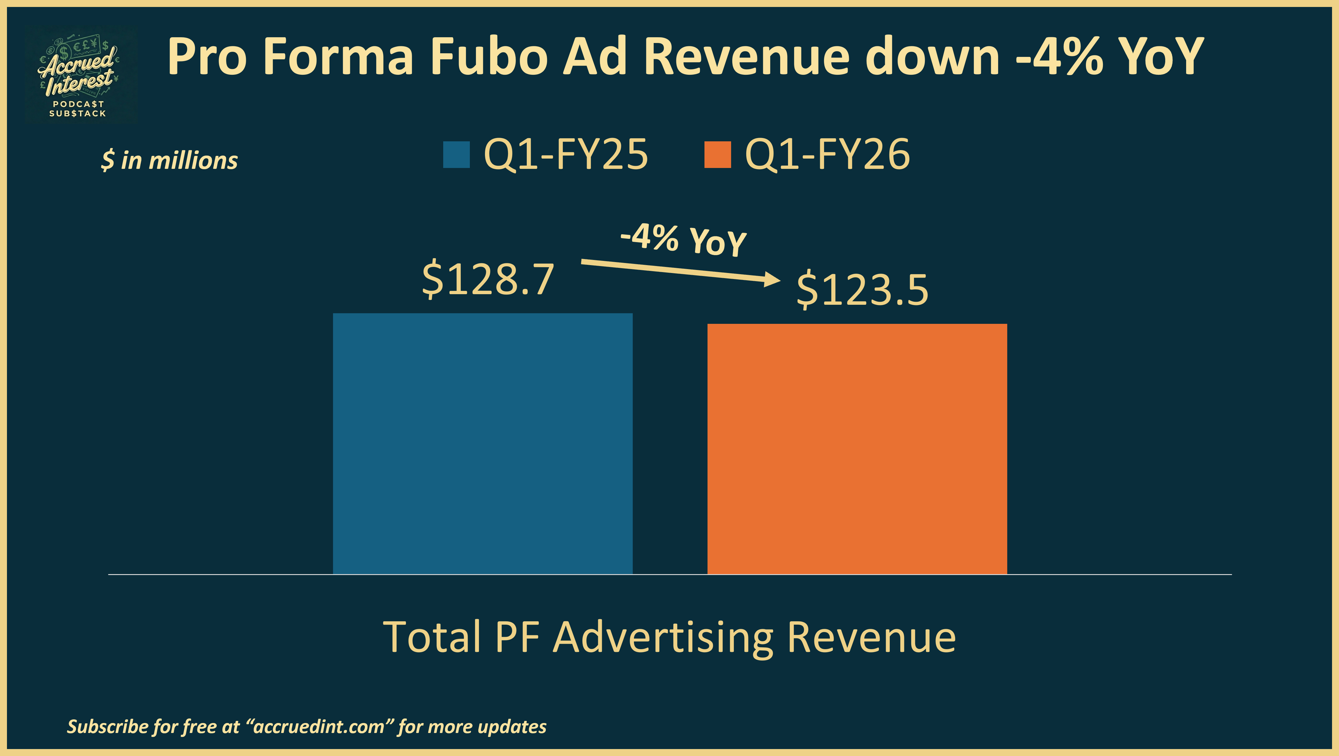 Accrued Interest TL/DR: Fubo’s latest Q1 FY 2026 earnings confirm the bear case: The growth story is dead. With subscribers shrinking, ad revenue falling -4% YoY, and management pulling guidance, the company is in survival mode. The announced reverse stock split is the final admission that the Hulu + Live TV merger failed to deliver. Squeezed between YouTube and Netflix—and missing the Olympics this week—Fubo is uninvestable. My “Underperform” rating from December stands—this is a broken thesis.