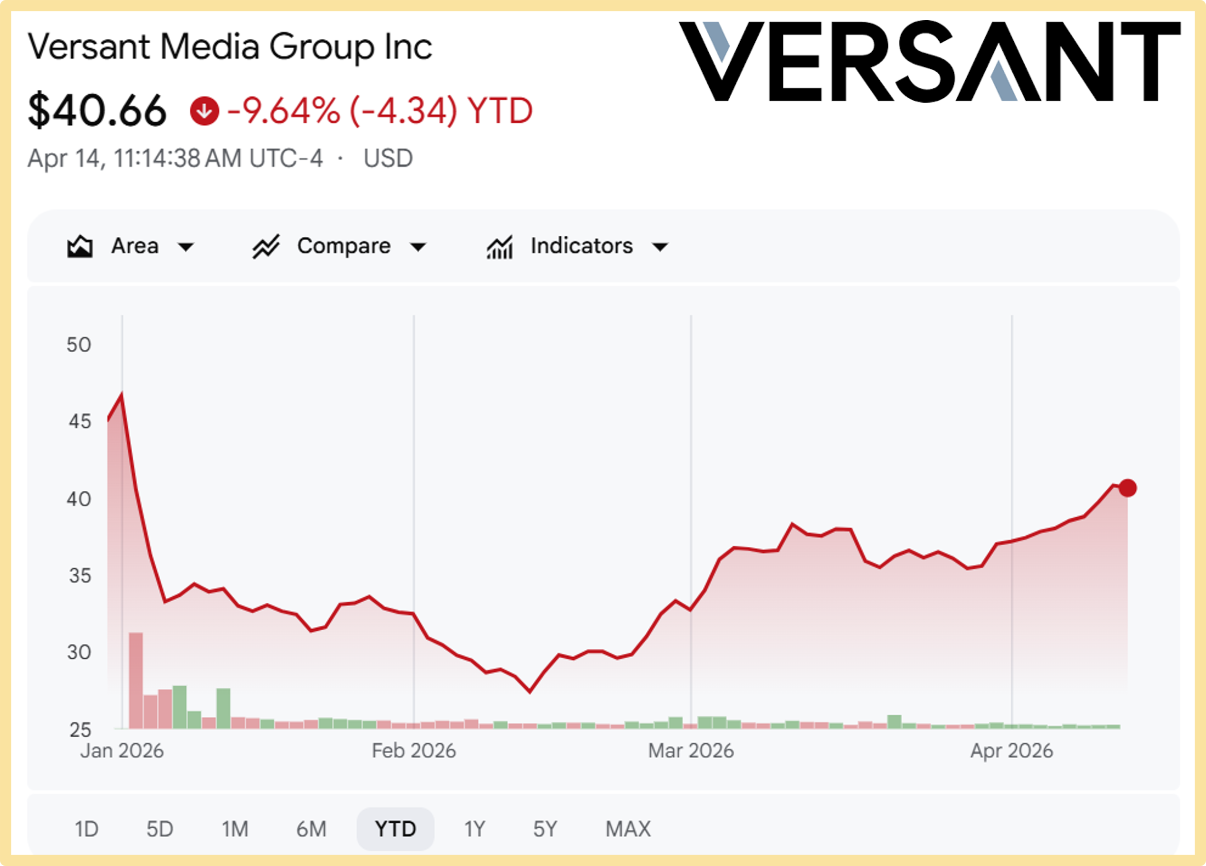 I admit that I was genuinely surprised to see Versant’s stock rally recently, currently trading back up around $41 per share. When I originally pitched the stock as an underperform, it was trading around $34 and was suffering from a wave of forced, indiscriminate selling. It looks very much like Einhorn, and I would assume a few others, stepped in to buy this as a deep value or special situations play.