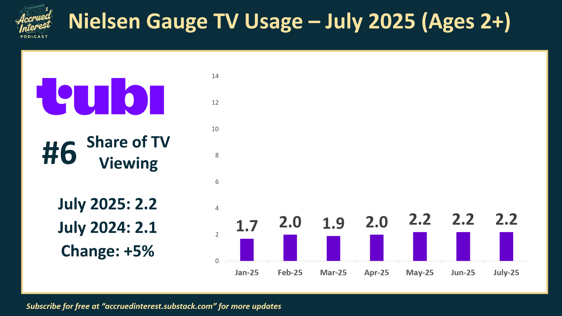 4) Tubi ($FOX / $FOXA) was #6 with 2.2% share