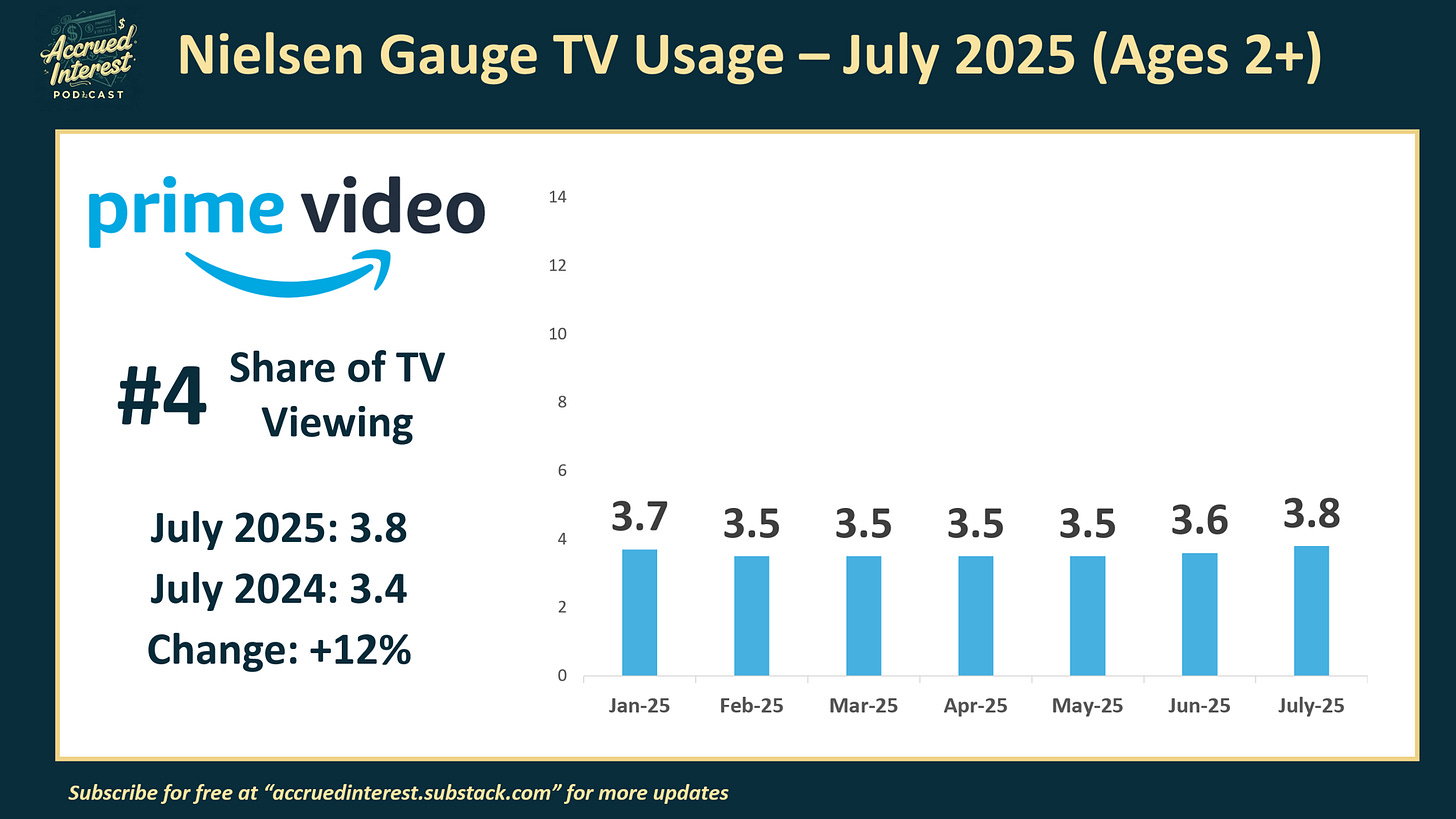 3) Prime Video ($AMZN) was #4 with 3.8% share