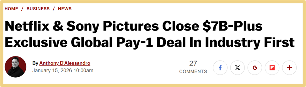 Relevant Tickers: NFLX 0.00%↑ , GOOG 0.00%↑, GOOGL 0.00%↑ , WBD 0.00%↑ PSKY 0.00%↑ , DIS 0.00%↑ , AMZN 0.00%↑ , META 0.00%↑