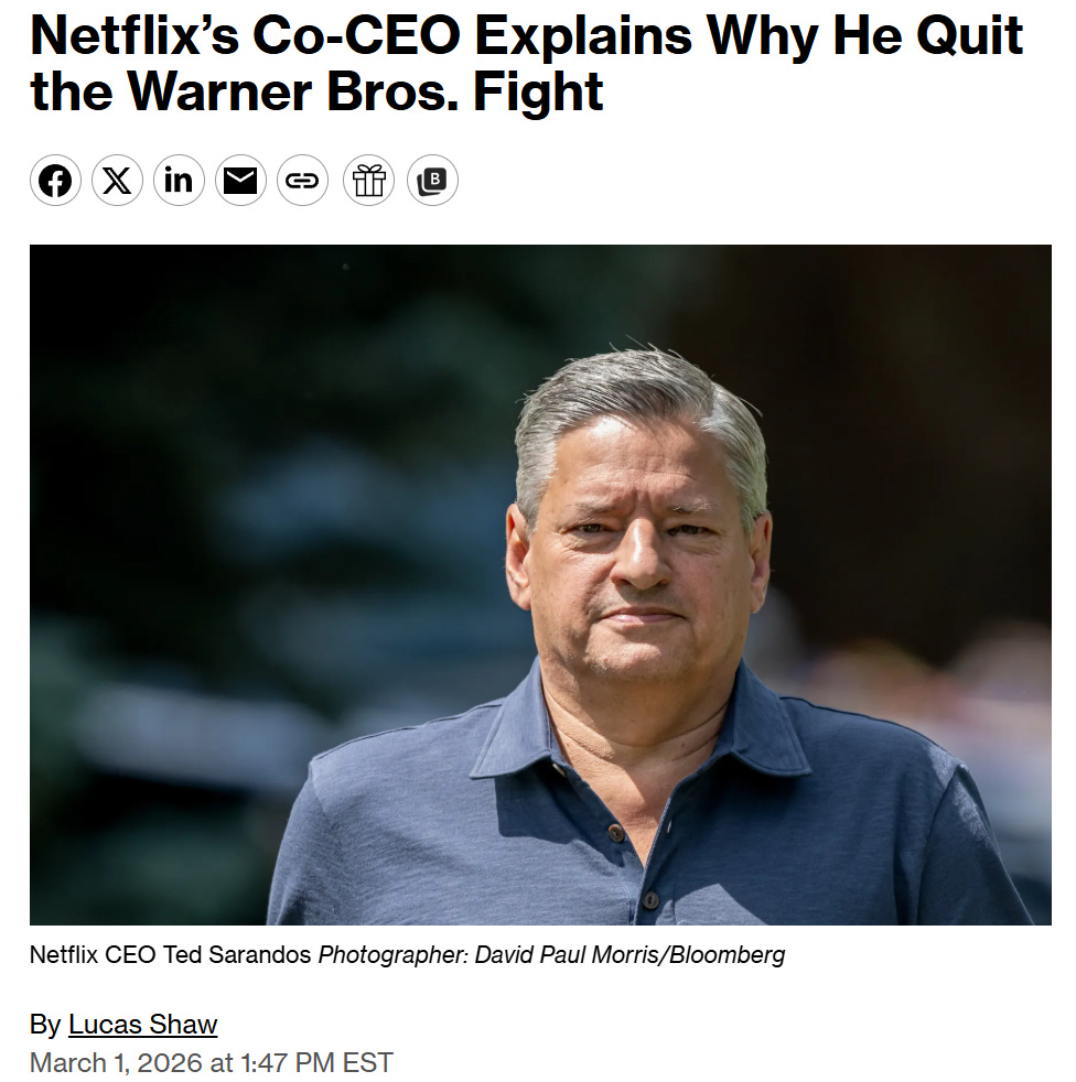 When you look at the landscape today, the competitor’s curse is very real. As Netflix Co-CEO Ted Sarandos recently pointed out regarding the fallout of the WBD bidding war, whoever won that debt-laden prize will be forced into making operational cuts “in the excess of $16 billion.”
