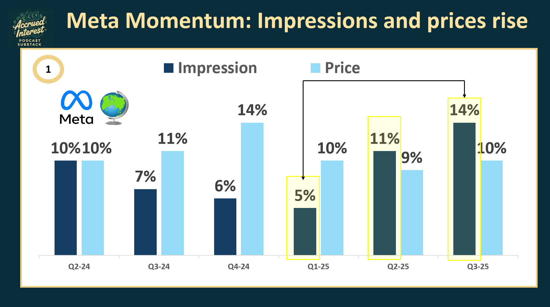 1. Meta Momentum: Impressions and Prices Both Rise